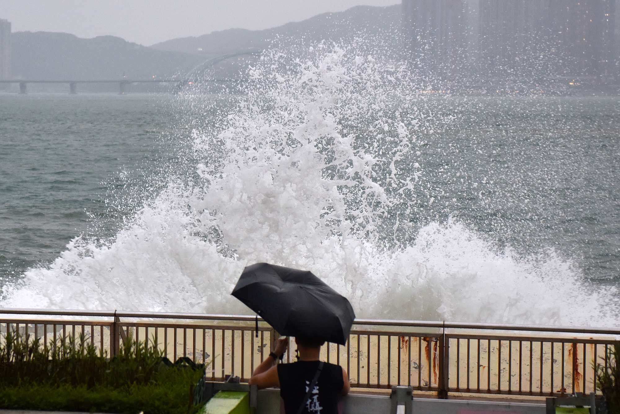 天文台指,香港天气仍然恶劣,有频密狂风大骤雨及雷暴,海有非常巨浪及涌浪,岸边仍会出现越堤浪,呼吁市民继续保持警觉,远离岸边及停止水上活动。